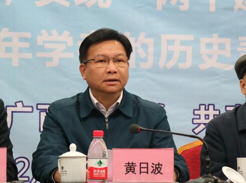 黄日波在讲话中指出,“科技三会”对全面贯彻创新发展理念、实施创新驱动发展战略,加快建设创新型国家和世界科技强国进行总部署总动员。科技创新已经摆在国家发展全局的核心位置,成为了社会生产力和综合国力的战略支撑。抓创新就是抓发展,谋创新就是谋未来,而人才则是创新的根基。今年广西召开的全区创新驱动发展大会上明确指出,未来广西将加大创新投入,新设立创新驱动发展专项资金支持科技创新,主要支持关系自治区经济社会发展的重大科学研究、重大科技攻关、重大新产品开发和国家级、自治区级创新平台等建设。黄日波在年会上还勉励广大青年学者,要充分认识自己所承担的历史重任,把自己的聪明才智与“三大生态”建设的需要紧密结合起来,加强学术研究,促进科技成果转化与应用。