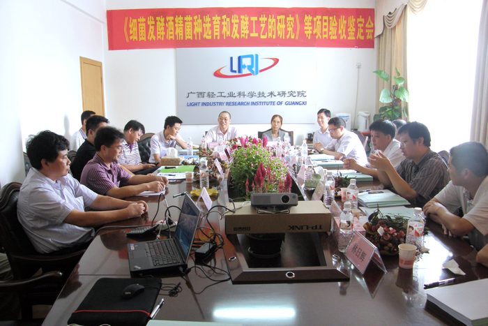 7月14日上午,自治区科技厅组织专家组对我院长期未结题的《细菌发酵酒精菌种选育和发酵工艺的研究》、《酒精生产专用新型抑菌剂的研究》、《牡蛎多糖提取及制备抗辐射功能食品的研究》和《以蔗糖为原料发酵生产葡聚糖》等四个科研项目进行了验收鉴定。该四个项目已于7月2日通过查定,专家组在此基础上,经过认真查阅资料、讨论、质疑后,对项目所做的工作,取得的成绩给予了肯定,并一致同意《细菌发酵酒精菌种选育和发酵工艺的研究》通过鉴定,其余3个项目通过验收。