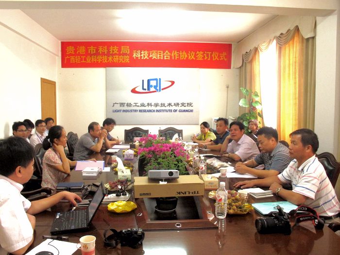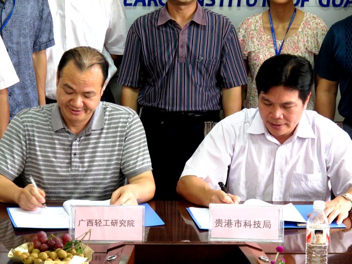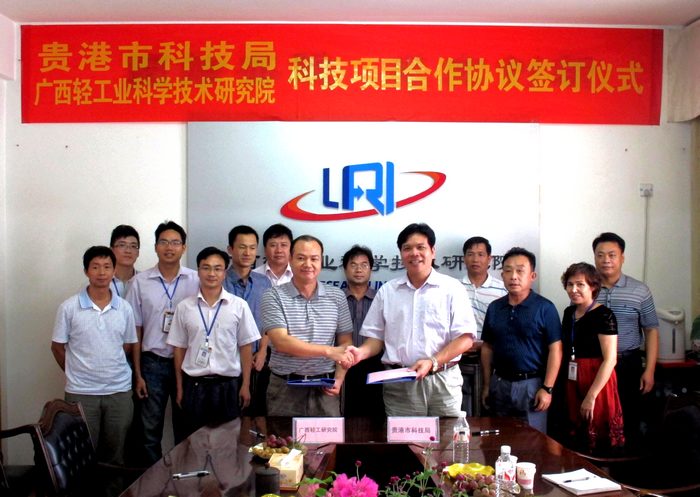 仪式上,罗左青院长表示,此次与贵港市科技局开展科技合作是我院实现科技服务的一次很好尝试,在合作过程中要实现合作双方、项目研究人员多赢的良好局面。刘庆强局长也表示,要以此次‘无硫淮山的加工新技术’科技合作为契机,结合贵港市农业、加工业等方面的发展需求,充分利用广西轻工业科学技术研究院的科研人才和技术优势拓展双方的合作领域,为贵港市的经济和社会发展提供更好的智力支持。随后,刘庆强局长与罗左青院长代表双方在协议上签字。