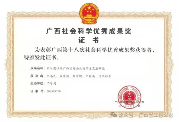 国控向新行|广西轻工院公司研究成果荣获广西社会科学优秀成果二等奖