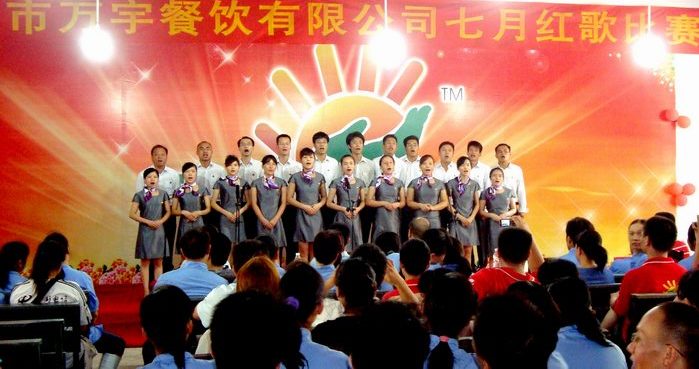 为了纪念中国共产党建党91周年和红军长征胜利76周年,教育公司员工铭记革命历史,继承光荣传统,弘扬民族精神,唱响爱党、爱国主旋律,进而提振员工精气神,柳州万宇餐饮有限公司于2012年7月20日成功举办了一场“歌颂党、歌颂祖国、弘扬爱国主义精神”七月红歌比赛。