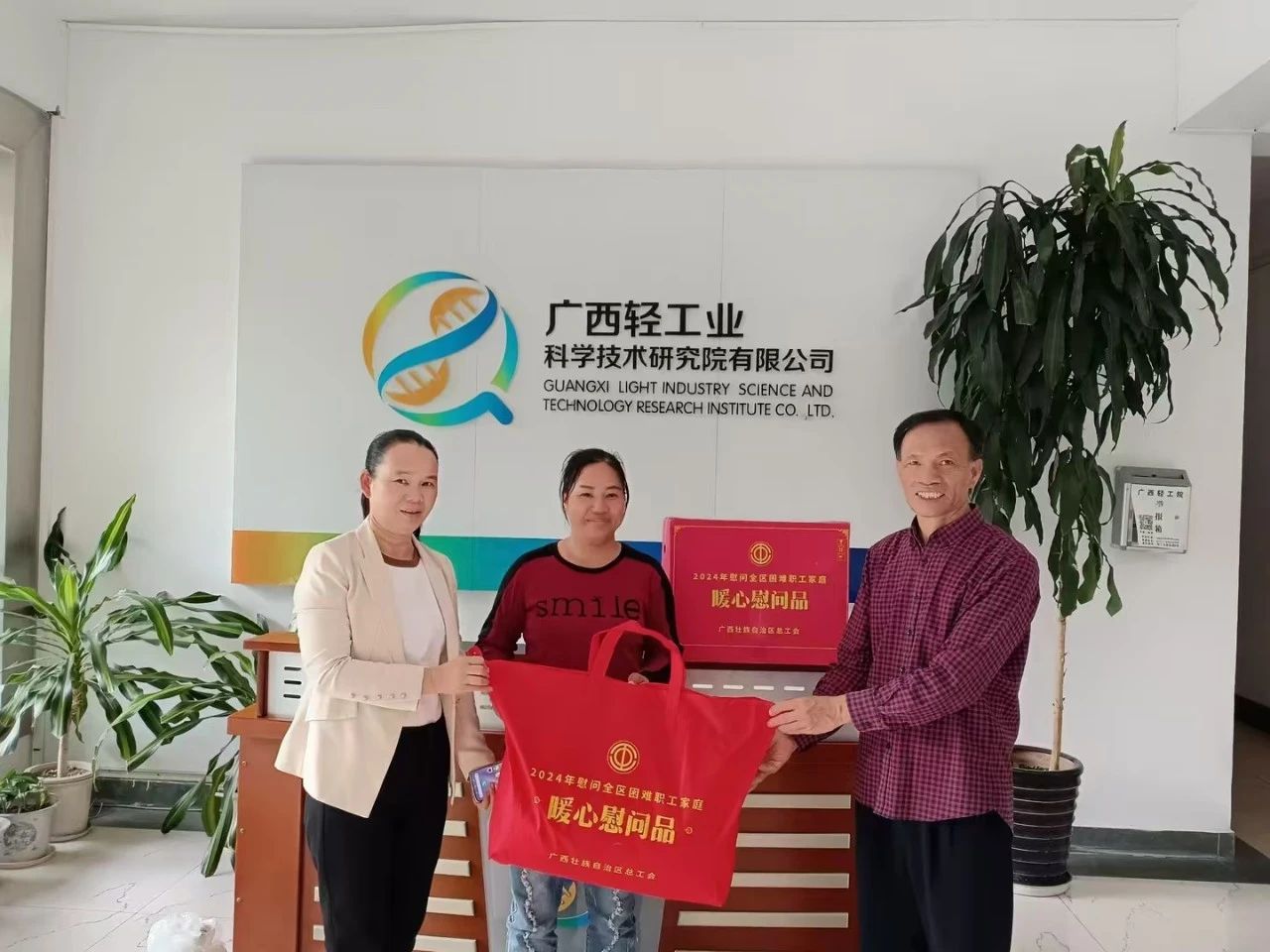 11月5日,广西轻工院党委副书记、职工董事、工会主席梁永华带队慰问所属南宁万宇公司生产技术部李艳谊,送上关怀与祝福。