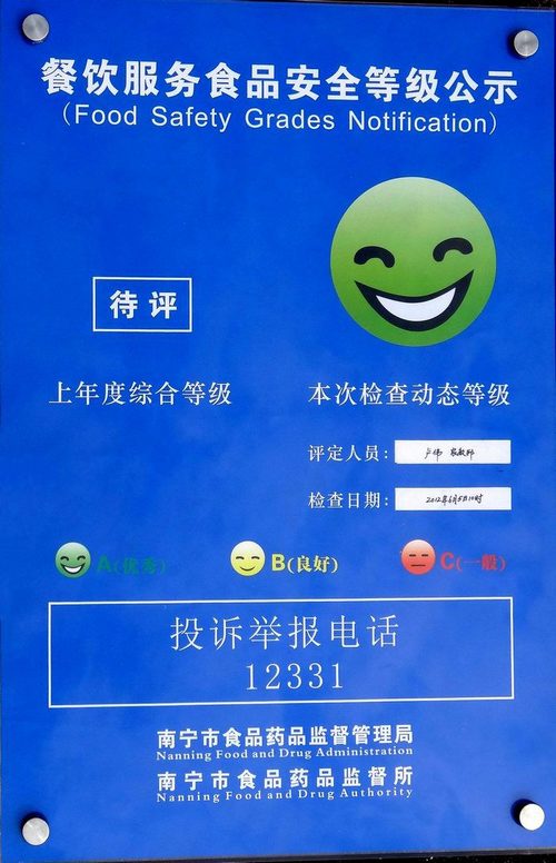 会上,由南宁市食品安全办主任、南宁市食品药品监督管理局局长彭明通报了2012年南宁市餐饮服务监督量化分级管理工作进展情况,并宣布今年由该局评定出的73家优秀餐饮单位名称,优秀餐饮单位将获得南宁市食品药品监督管理局发放的餐饮服务食品安全等级公示牌“大笑”脸谱标志。公司的中央厨房荣获代表南宁市最高食品安全等级的“大笑脸谱”。