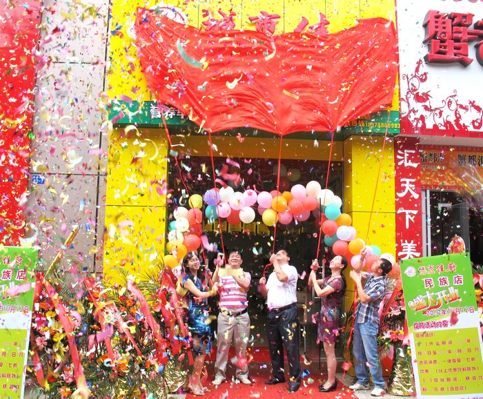 上午11点28分整,伴随着鲜花簇拥、礼炮声声,领导嘉宾们共同为新店开业正式揭幕!