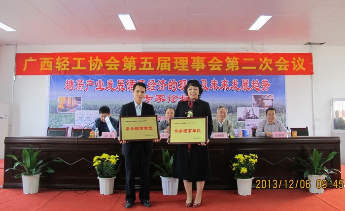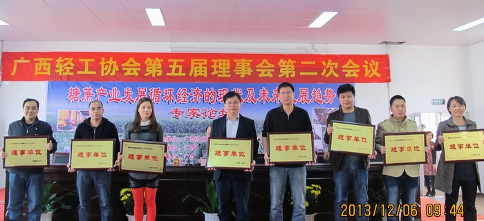 会议增选广西南宁冠润贸易有限公司、广西鑫粮粮食集团有限公司等9家企业为理事单位,增选广西智柱科技有限公司、广西绿地球能源科技有限公司为常务理事单位。在随后召开的广西轻工协会第五届理事会常务理事第三次会议上,中国轻工业南宁设计工程有限公司增选为副理事长单位。协会领导向理事单位、常务理事单位、副理事长单位颁发了牌匾。