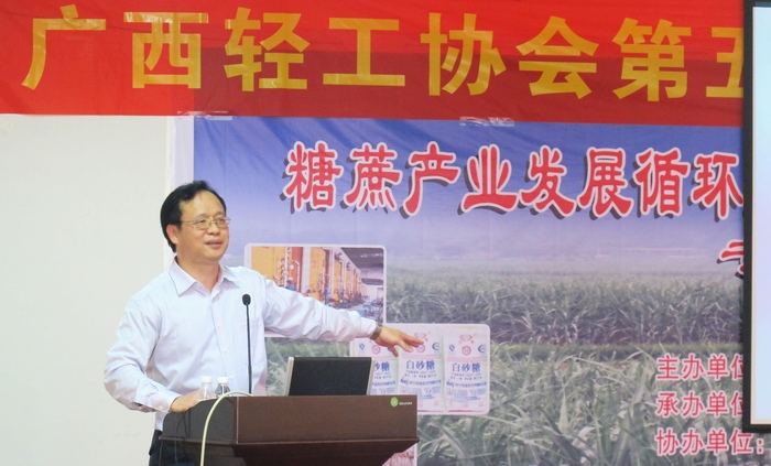 由广西制糖企业节能减排技术水平处于行业领先的广西永鑫糖业集团副总裁、高级工程师何华柱给与会代表分享该集团在节能减排及循环经济中的经验与收获。