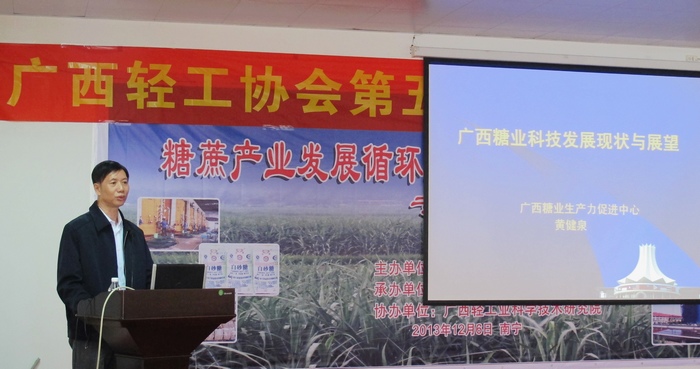 2013年12月6日,由广西壮族自治区科学技术协会主办、广西轻工协会承办、广西轻工业科学技术研究院协办的“糖蔗产业发展循环经济的现状和未来发展趋势”广西专家论坛在广西轻工业科学技术研究院四楼多功能厅隆重举行。广西壮族自治区科学技术协会学会部副部长钟谷波到会致辞,广西轻工协会理事长、广西轻工业科学技术研究院院长罗左青简要介绍本次论坛的背景与主要内容,5位在广西糖蔗产业具有较高知名度的专家分别做主题演讲,来自广西区内外的制糖企业集团、设备企业、科研院所、各涉及制糖专业的学校及广西轻工协会会员单位的代表、师生和本次论坛的投稿作者约150人参加了本次论坛。