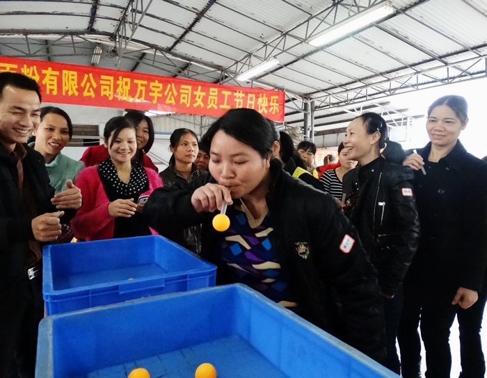 上午8:00时,庆祝活动正式开始,生产技术部经理钟芸芸肯定了女职工们一年来的工作,并对2013年多次获得月度优秀员工称号及优秀女基层管理员的女职工进行现场表彰,号召全体女工以她们为榜样,加强技能学习,增强责任心,提高业务素质。张副主席、陈副总分别代表院工会及公司领导致辞,对各位女职工致以节日的问候,并给2013年各月度优秀女员工赠送鲜花,与她们合影留念。接着,大家开展了企鹅接力、定时吸乒乓球、定点投乒乓球 、搭桥过河等一系列趣味竞赛活动。活动采用抽签组合的方式分组,打破车间界限,使车间员工更好进行沟通交流,从而提高团队的凝聚力,也充分展示了车间女职工的风采。