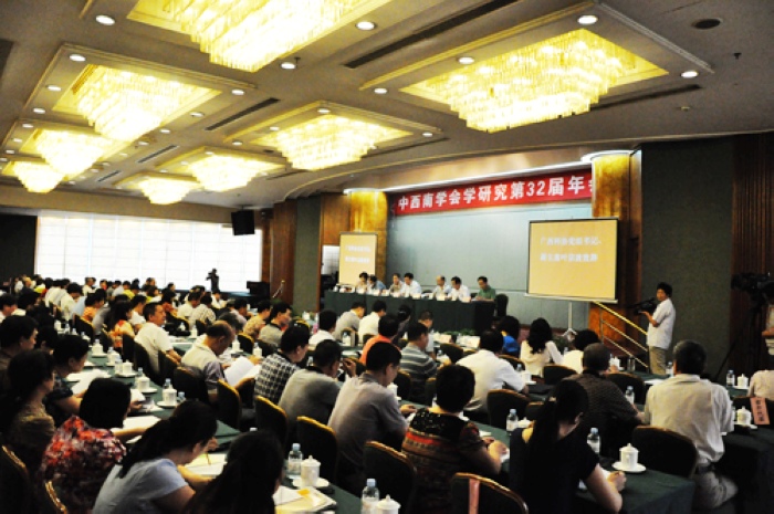 7月9日,中西南学会学研究第32届年会在南宁举办。来自中西南10个省(直辖市、自治区)的科协领导及所属学会代表共260多人出席年会。广西科协党组书记、副主席叶宗波出席年会并致辞,广西科协副主席方芳主持会议。广西轻工协会秘书长贤章胜代表广西科协所属的350多个学会(协会)在会上作了交流发言。