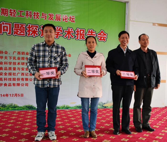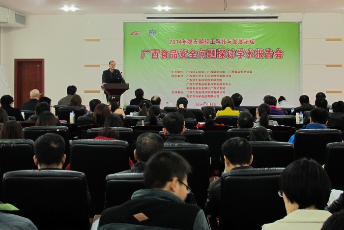 2014年12月5日,由广西轻工协会、广西奶业协会、广西食品安全协会联合主办,广西皇氏甲天下乳业股份有限公司、广西轻工业科学技术研究院、广西大学食品质量与安全研究中心和中国食品安全报社广西记者站承办的第五期“轻工科技与发展”论坛在广西皇氏甲天下乳业股份有限公司总部三楼多功能厅举行。本期论坛的主题是“广西食品安全问题探讨”。来自主办单位和广西食品安全研发、监管的五名专家、学者结合自身单位与工作的实际情况做了主题发言,广西的食品相关企业、高校、科研院所代表约120人参加本次学术报告会,共同探讨广西食品安全问题。