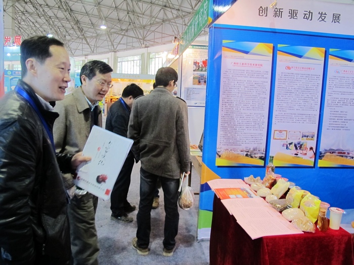 我区各科研院所、大专院校等参加本届广西科技活动周新技术新产品交流交易会,我院与广西轻工协会共同参展,展出我院的特色科技产品,并发放我院自主研发技术的宣传资料。我院产品及技术受到现场观众的热情咨询,同时得到广西科技厅高新处处长李海洪和副处长詹建的现场指导。