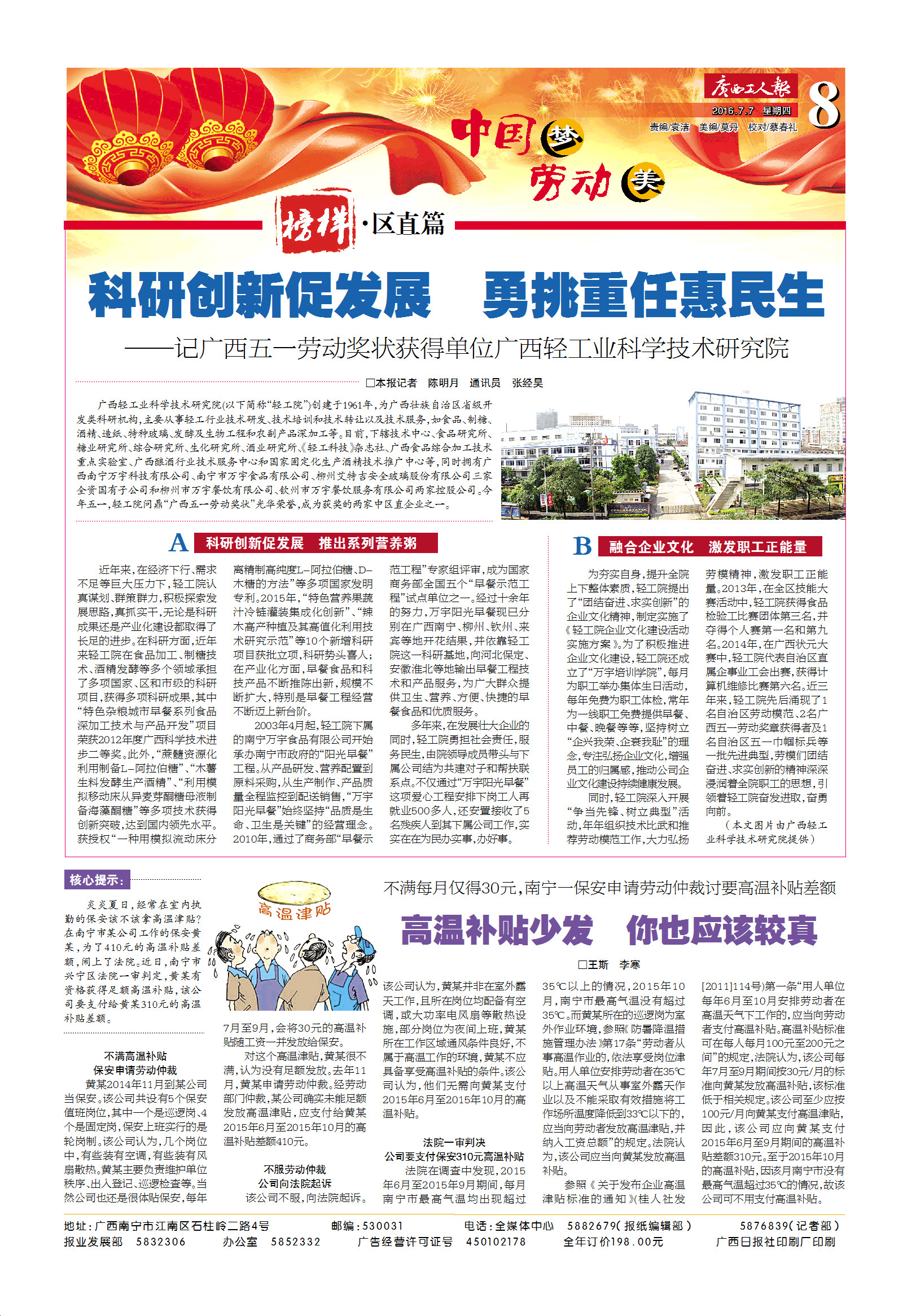 《广西工人报》宣传报道轻工院发展成就