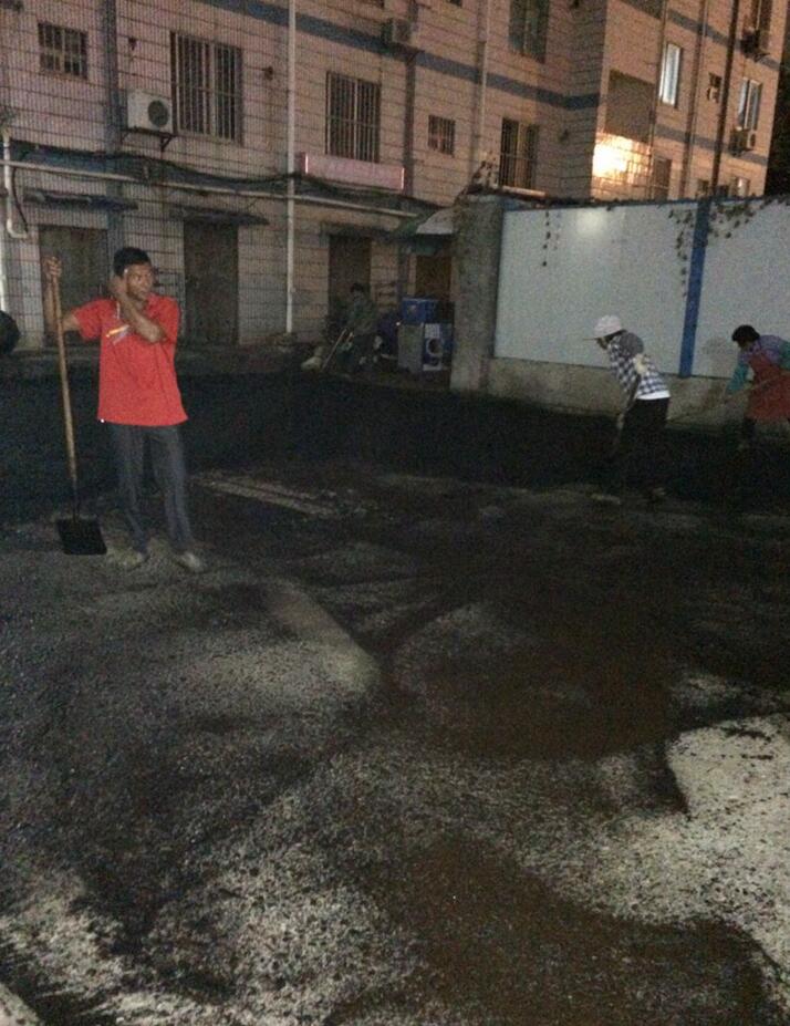 为了改善生活区的公共环境,彻底解决这一问题。2016年1月我院向南宁市亭洪社区申请启动“惠民工程”专项资金来平整、修补生活区大门路面。经过社区等部门的投票、评审,福建园街道办批复同意我院的申请报告。2016年11月11日晚20时许,亭洪社区潘英文书记亲临现场,组织中标施工单位前来铺沥青,工人们经过4个小时的劳作,终于顺利完成该段路面的修补。“门口的路铺好了,我们以后出门就不用再趟水了”居民们都兴奋地说,看着修好的路给以后出行带来的方便,他们直夸单位、社区为居民做了一件实实在在的好事。