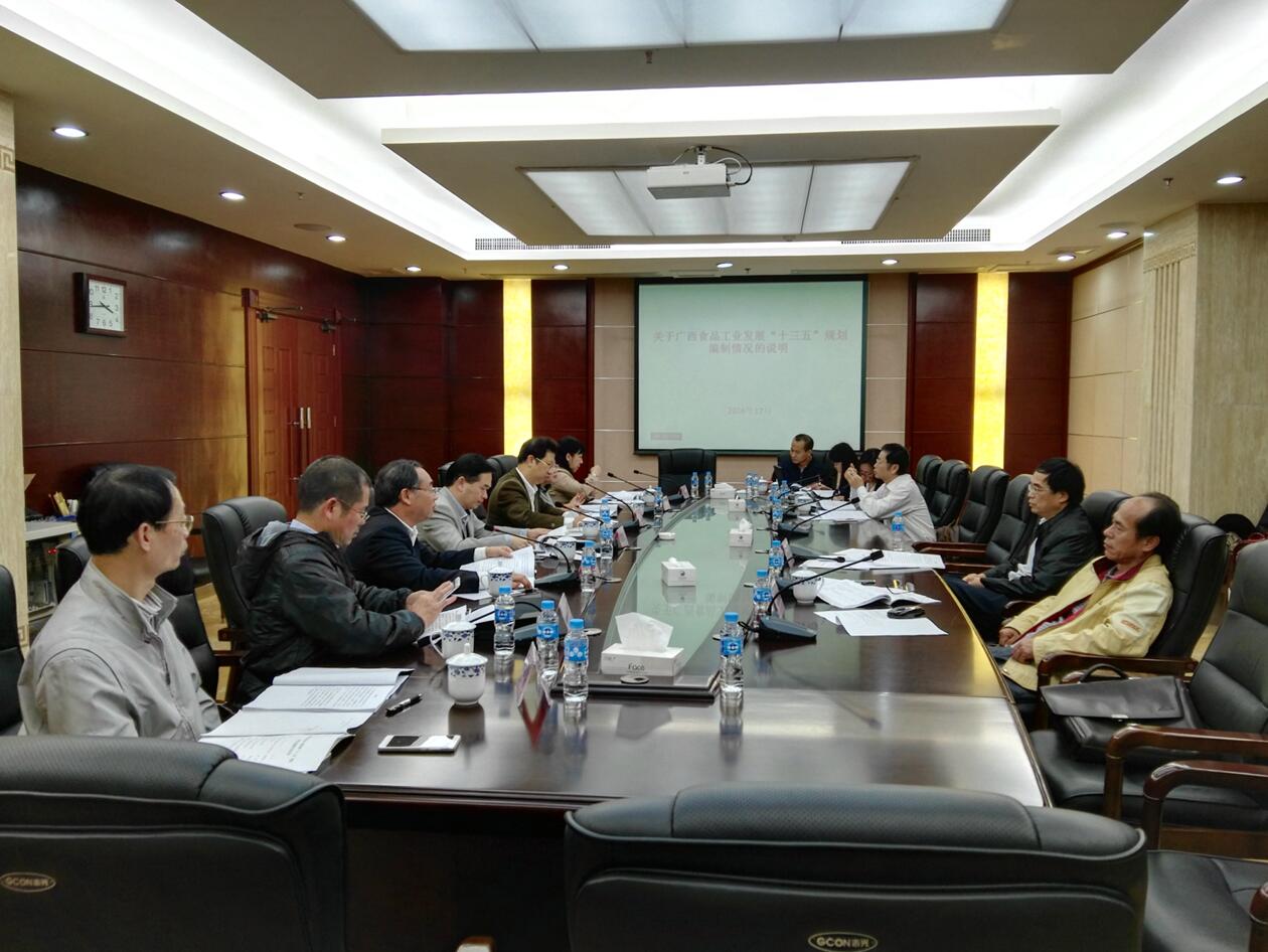2016年4月上旬,我院与自治区工业和信息化委签订了广西区政府采购合同书,承担编制《规划》的任务。5月至 6月,编制组成员先后到北海、防城港、梧州、河池、桂林和南宁等六个市区,对广西部分食品生产龙头企业的产业规模、增长速度、存在问题等方面进行调研,听取了企业对“十三五”食品工业发展目标、主要任务、重点布局及相关政策支持等方面的建议意见。6月至10月,收集《规划》编制相关食品工业经济运行统计数据,完成初稿编写。11月上旬向区工信委领导、行业专家征询《规划》初稿修改意见建议。经反复修改完善后形成《规划》评审稿。