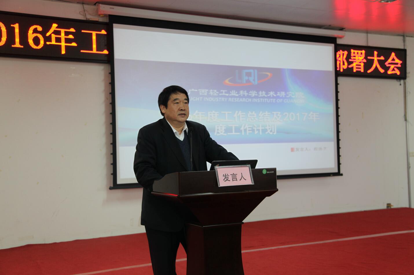 党委书记、院长程劲芝结合我院科研、生产经营、党建工作等方面对2016年工作做全面性总结,重点对工作中存在的困难和问题进行了深入的剖析,并规划与部署了2017年主要工作任务。他表示,2017年我院在我国经济环境愈加复杂的形式之下将会面临更大的压力,任务也更重,每位员工应意识到改革是企业发展当中一个重要的过程,是我院作为一家科技型企业生存和可持续发展的必由之路,我们要做到改革与发展齐头并进,全体员工迎难而上,共同克服难关。同时需加强党建工作,充分发挥我院党组织在我院科研生产经营工作中的核心作用,建立具有轻工院特色的优秀企业文化。