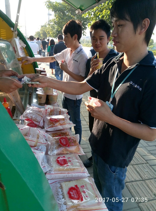 “正规厂家的早点比较能确保食品安全,比普通无证流动摊点让人放心。”一位正在我司商亭前购买早餐的富士康职工说道,“自从附近违规经营的餐饮店被全部整改后,将近两个月以来我们早餐问题就只能在路边摊解决,心里总是觉得不放心但是又没有其他选择。”