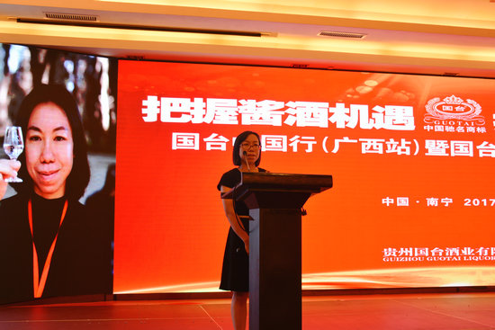 会上,首先由广西酿酒协会秘书长伍彦华致辞。伍秘书长说,茅台镇酒企是中国白酒行业的优秀代表,正是有贵州国台酒业有限公司这样的酱香型白酒企业一直在坚持传承、坚守品质和创新,酱香型白酒才有了经多年深度调整后强势复苏的势头。伍秘书长还强调,希望广西酒类企业与贵州携手同行,在文化传播、产品创新、营销之道等方面进行更多交流,多相互学习借鉴,共同促进中国白酒行业的健康发展。在市场培育及消费者培养方面,要贴近消费者的角度,普及白酒品酒知识和酒文化,让消费者体会到生产企业的匠心品质,感受到中国白酒的独特魅力。紧接着国台酒业副总经理汤旭作了以“把握酱酒机遇,携手国台共赢——凝聚千商,共享酱香”的演讲。