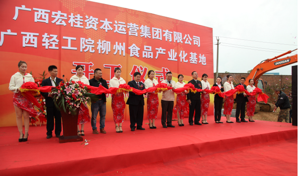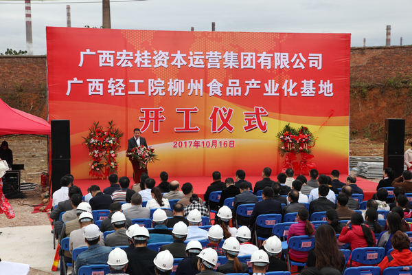 2017年10月16日,广西宏桂资本运营集团广西轻工院柳州食品产业化基地项目在柳州市白露工业园区举行了开工仪式。参加开工仪式的领导有:宏桂集团公司党委书记、董事长何有成,党委副书记、总经理谢胜修,宏桂集团公司部分中层领导;柳州市和柳北区相关职能部门领导;宏桂集团公司部分二级各企业领导;轻工院领导班子及中层领导;建设施工单位代表、监理单位、设计单位代表出席开工仪式。仪式由轻工院副院长杨有承主持。