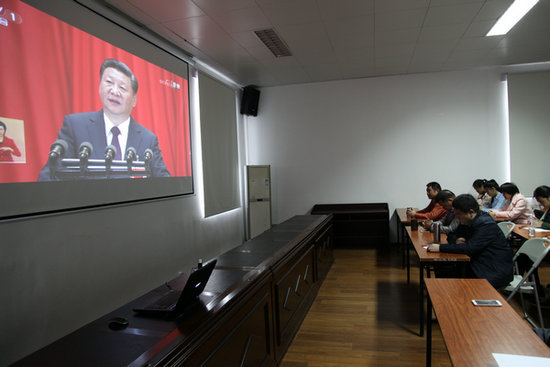 2017年10月18日上午,中国共产党第十九次全国代表大会在北京隆重召开,广西轻工院党委组织全体干部职工收听收看党的十九开幕式盛况。