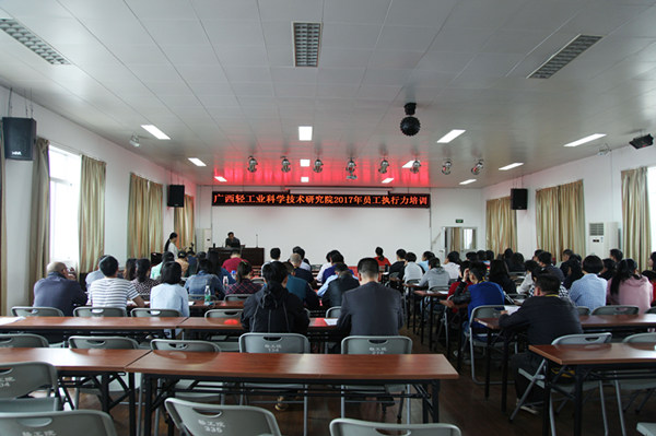 为进一步提升轻工院员工的业务水平,提高员工执行力,2017年11月10日,由轻工院企业管理发展部经理邓基利就员工执行力培训在轻工院多功能报告厅进行授课。参加本次培训班人员包括轻工院各部门全体员工及院下属万宇科技公司、南宁万宇食品公司、万宇餐饮连锁公司部分领导及员工。