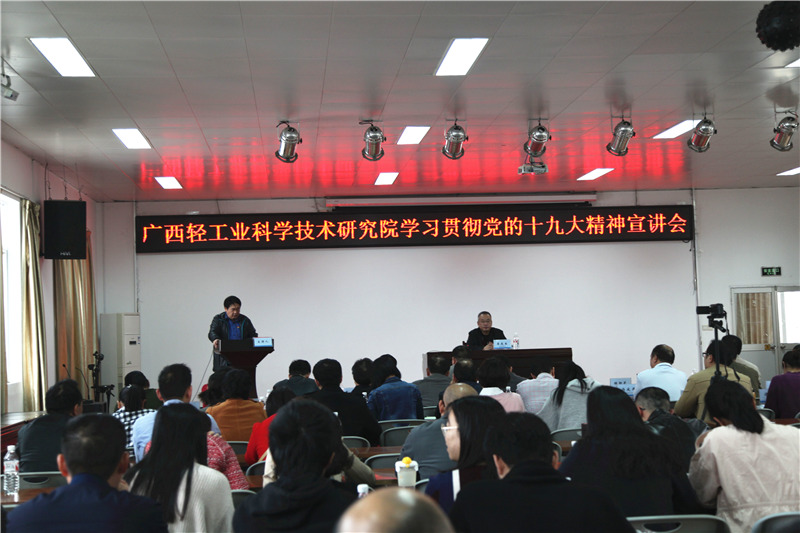 12月7日,广西宏桂资本运营集团有限公司纪委书记李庆生到轻工院开展学习贯彻党的十九大精神专题宣讲。轻工院全体党员干部及生产业务骨干参会。
