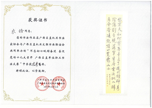 不忘初心,砥砺奋进。为了喜迎党的十九大胜利召开,进一步提高自治区各直属单位职工的书法水平及文化素养,展示职工良好的精神风貌,广西区直机关书法家协会与广西区直机关文联书画联谊会于2017年7月底共同举办广西区直单位职工书法大赛。