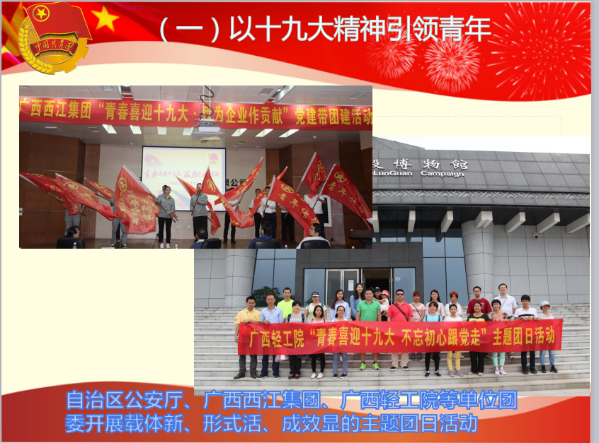 轻工院团总支2017赴南宁昆仑关战役遗址开展爱国主义教育的五四主题活动,因载体新、形式活,被大会点名表扬,并作为典型以图片形式展出。