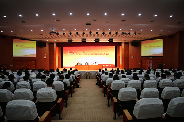 2018年3月5日上午,区直机关共青团工作会议在广西民族博物馆举行。会议回顾总结了自治区直属机关2017年共青团工作,部署安排了2018年共青团工作任务。自治区直属机关工委副书记苏德明、共青团广西区委党组成员、副书记李晓勇出席会议并讲话。会议由自治区直属机关团工委书记谢萍主持。区直机关团组织100多名负责人参加了会议,轻工院团总支书记罗志灵参会。