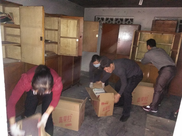 旧资料室内存放着轻工院诸多历史资料,由于没有专管人员对资料室进行打扫和整理,导致内部积尘、蜘蛛网满布。资料室处于一楼,未有任何防潮、防尘、防火、防虫等设备。院领导考虑到这些文件资料是对轻工院历史的真实纪录,旧资料室的环境对历史资料的保管极为不利。因此,轻工院直属党支部便提出在“学雷锋”活动中解决这一难题。尽管搬运过程中粉尘大、霉菌多,但是党员同志们发挥着不怕脏、不怕累的精神,经过一多个小时的装箱搬运后高效率地完成了此次历史资料的清运。