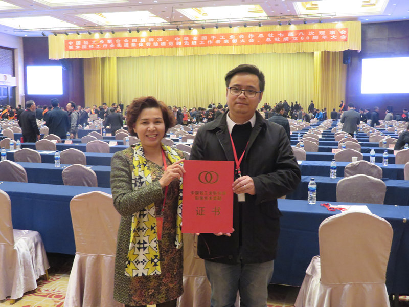 大会表彰了2017年度中轻联科技进步奖,由广西轻工协会推荐的广西中烟工业有限责任公司“小孔径多孔淀粉及其颗粒状吸附材料的技术创新与应用”获得了中轻联科技进步三等奖,并在会上领奖。