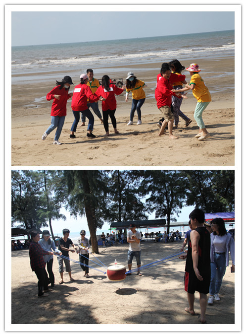 在随后开展的沙滩竞技及拓展活动中,为使全院青年团员充分交流沟通,提升团队协作意识,活动将全体人员分成四个小组并以小组成员相互配合的对抗形式进行。此次活动内容设计丰富,既有对抗激烈的“沙滩拔河比赛”、“撕名牌大战”,又有考验团队合作的“穿越火线”、“鼓动人心”、“信息传递”、“你来比划我来猜”。在为期两天的拓展训练中,队员们热情高涨,大胆尝试,积极参与,各小组相互鼓劲加油,拼力量拼智慧拼默契,完成了一项又一项任务,充分展现了年轻人奋勇争先、不断进取的风采,增强了团队的凝聚力。本次拓展,还先后开展了包饺子大赛、厨艺大比拼,团员青年们各显神通,一道道美味可口的菜,让大家赞不绝口。帐篷露营、沙滩晚会,更是拉近了青年们的距离,将活动推向一波一波地高潮。