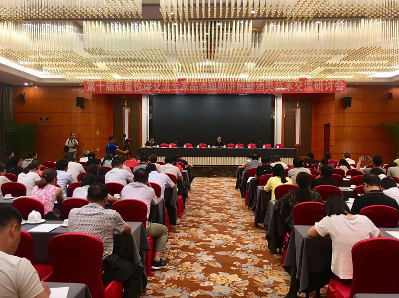 13日开始,参加会议的代表们集聚一堂,共同为八省(区/市)的参评酒样进行品评,以酒论酒、深入交流。酒样检评方法按照国家白酒感官质量检评办法实施,样品组根据香型、酒度、出厂价等对酒样进行分组。评委采用“盲评”方式对酒样进行检评,最终成绩通过去掉一个最高分和一个最低分,取算术平均值确定样品的最终评委得分,而专家组则是通过品评、讨论确定样品的最终专家组得分。两组品评同时进行,白酒品评共8轮,每一轮品评结束后由专家对酒样进行点评。评委组成员以此为参考,对照自己的品评结果,以此发现自身的品评不足之处并加以改善,不断提升自己评酒能力。酒样品评环节结束后,张国锦老师对本次品评进行了总结,今年的酒样相较于去年总体上质量较好,在写评语、打评分方面也比之前更为规范化。
