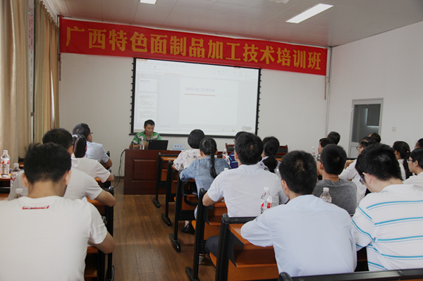6月28日,由轻工院主办的广西特色面制品加工技术培训班顺利开班。这是我院实施科技“走出去”战略又一个成功案例。参加培训班的学员有广西农垦明阳生化集团有限公司技术中心的科研人员和轻工院科研中心的科研人员共30余人,由南宁万宇食品有限公司总经理助理黄武江工程师进行授课。