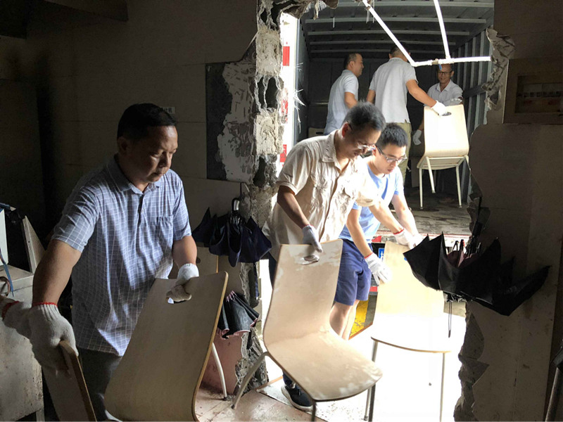 本次义务劳动主要是对旧设备、餐饮用具等物品进行搬移。在支部委员的带领下,大家充分发挥团队合作精神,对杂乱的物品进行分类、挑拣,然后采用流水线传递式方法,将物品装车运至综合楼;随后齐心协力将物品完整地卸下,并搬至综合楼7楼的储物室。整个劳动过程井然有序。尽管正是“山竹”号台风过境,天下着雨,但丝毫不影响党员同志们的工作热情,大家都干得热火朝天,出色地完成了搬移任务。