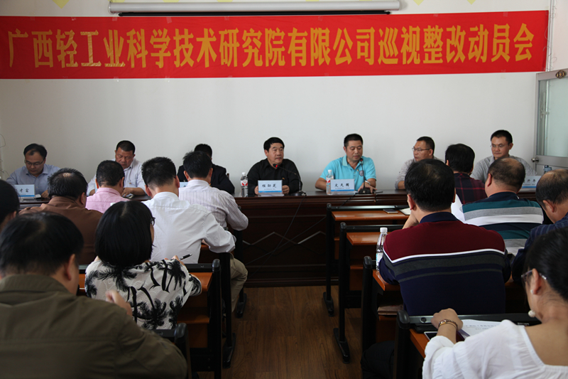 2018年11月13日下午,广西轻工业科学技术研究院有限公司召开了巡视发馈意见整改动员会,部署巡视整改工作。党委书记、董事长程劲芝做动员讲话,党委副书记、工会主席文天国主持会议,班子成员唐尧、杨有承、赖开平、肖凯、刘才富出席了会议。