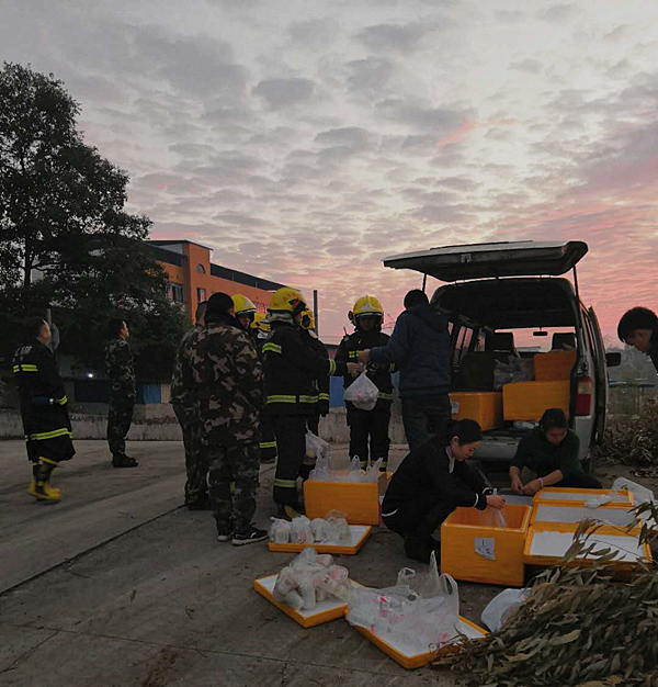 柳州万宇公司为火灾救援人员送上爱心早餐