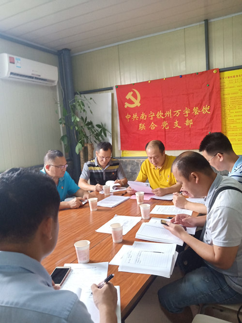 5月21日,南宁钦州万宇餐饮联合党支部组织全体党员、积极分子赴钦州市万宇餐饮服务有限公司开展“扫黑除恶我先行,夯实基础勇担当”主题党日活动,院公司党委委员、纪委书记肖凯同志以普通党员身份积极参与该支部主题党日活动。