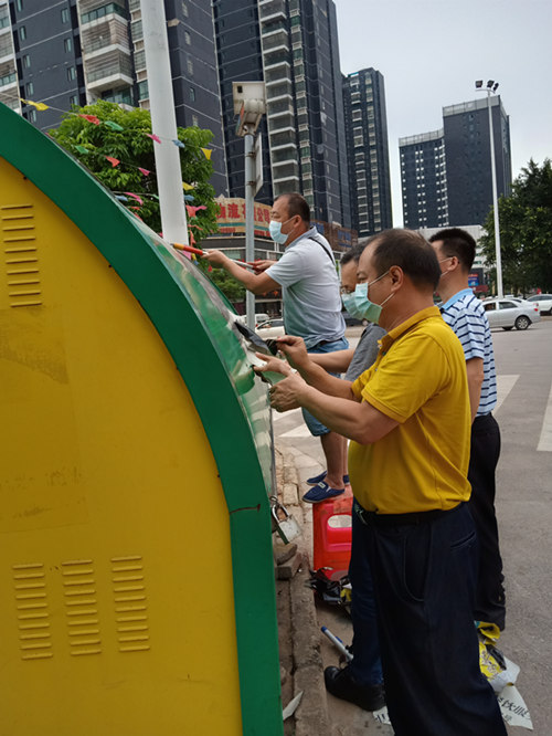 会后,根据钦州市万宇餐饮服务有限公司的经营工作需求,联合支部的党员顾不上午休,马不停蹄地对钦州公司阳光早餐的网点商亭进行了“扫黑”换新装,经过3个多小时的奋战,共清除并更换了11个风化老化的商亭户外POP贴膜,用实际行动作出夯实基础勇担当的表率。