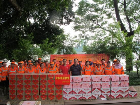 8月9日下午3时,作为西乡塘环卫站党委共建单位的南宁万宇党支部积极响应,奔赴邕江沿岸为奋战在一线的环卫工人送去凉茶与清凉粥,帮助他们一起对抗炎炎夏日的酷暑,同时表达了企业对环卫工人辛劳付出的感谢。洪水退,我们进!南宁万宇党支部与西乡塘环卫工人共进退。