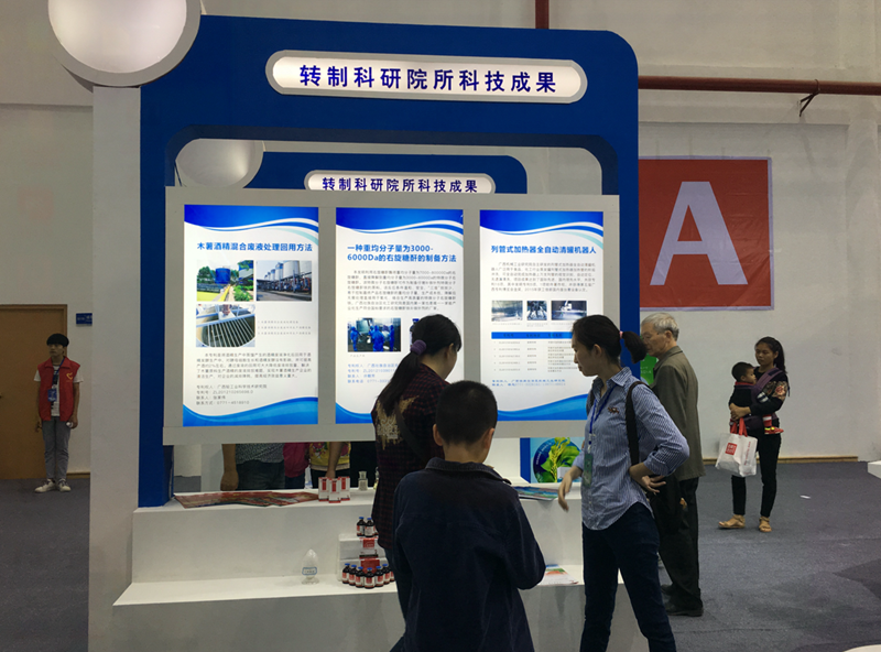 我院的“木薯酒精混合废液处理、回用方法”及“一种用模拟流动床分离精制高纯度L-阿拉伯糖、D-木糖的方法”等六个专利,随广西科研院所协会组织参加了本次展会。